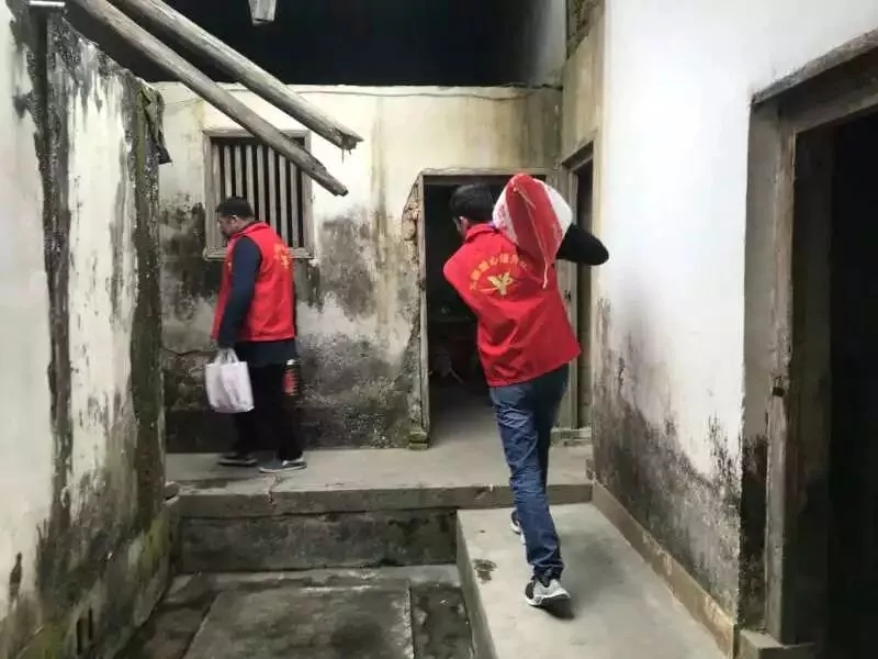 當天愛心活動第一站:來到紫金縣鳳安鎮黃龍村委會下新村看望81歲的 陳X如老人,老人有一個有精神障礙的兒子,母子無正常勞動力,生活靠遠房親人接濟,母子不和,同住危房,各煮各吃。無低保,每逢雨天房屋嚴重漏水,老人木床變水床,老人生活貧困。